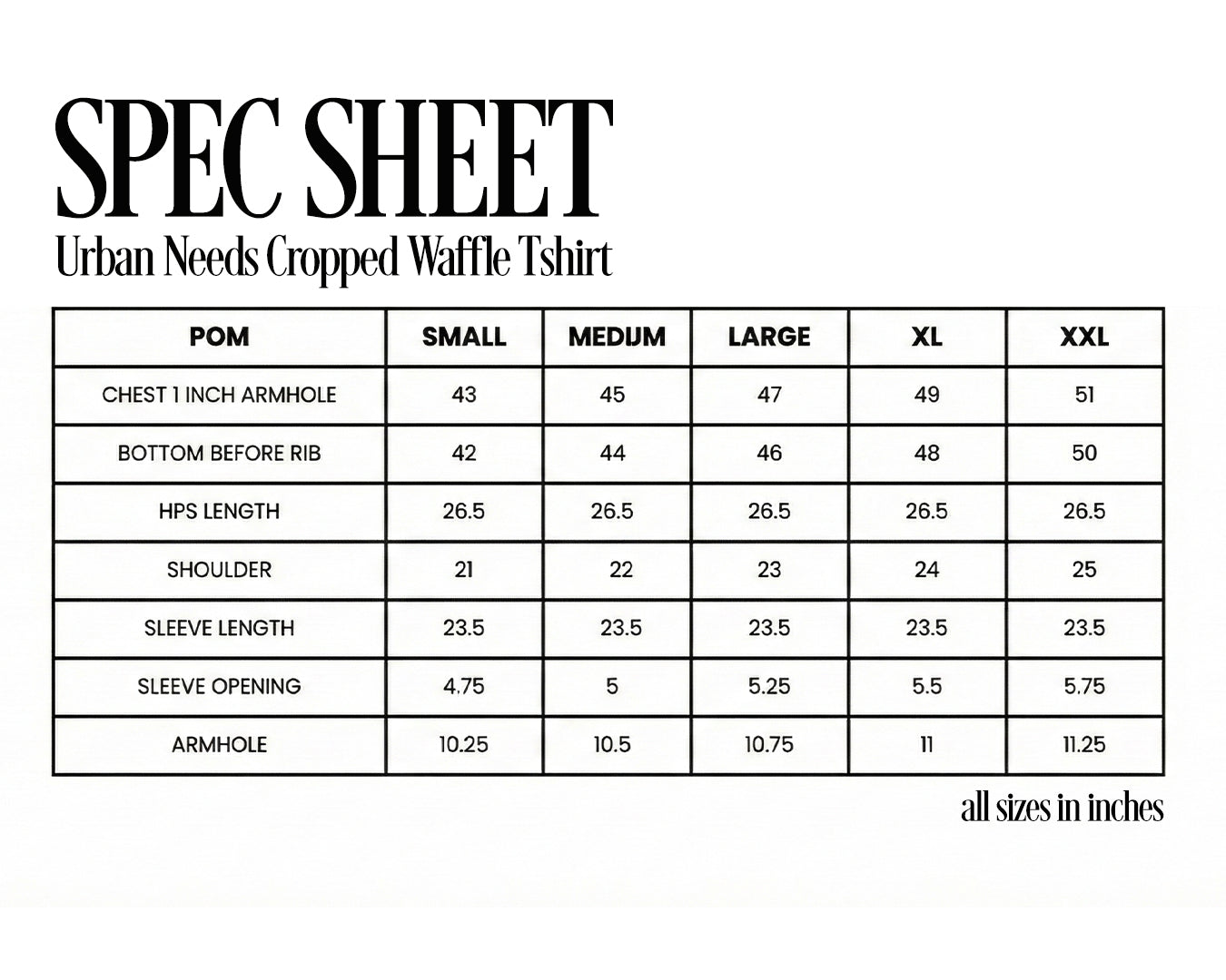 Size M: Chest (1” below armhole) 45", Bottom (before rib) 44", HPS Length 26.5", Shoulder 22", Sleeve Length 23.5", Sleeve Opening 5", Armhole 10.5"