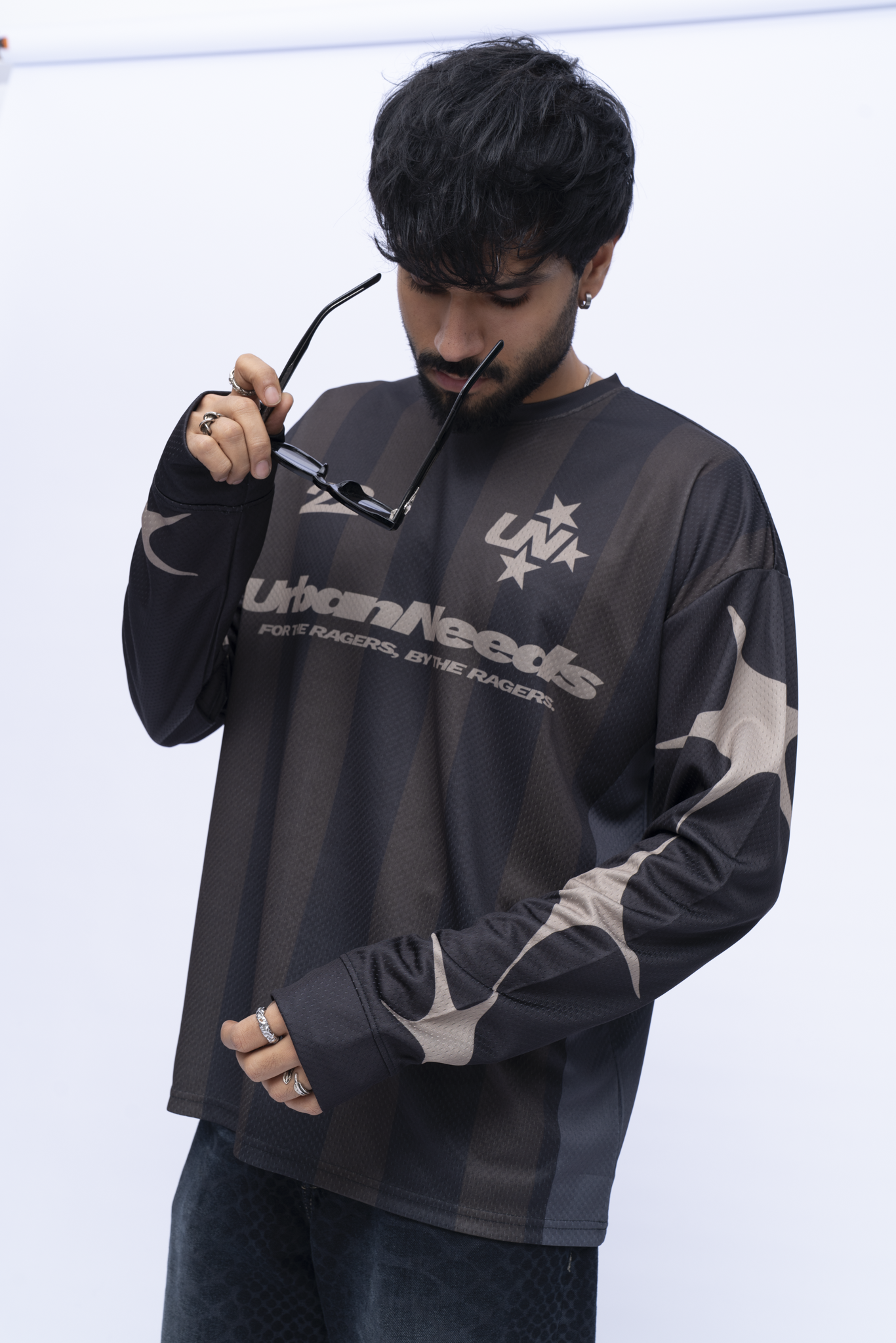 The Rager Long Sleeve Jersey in brown brings a warmer edge to rager energy. Cut oversized with an effortless fall, it’s grounded, relaxed, and quietly confident.